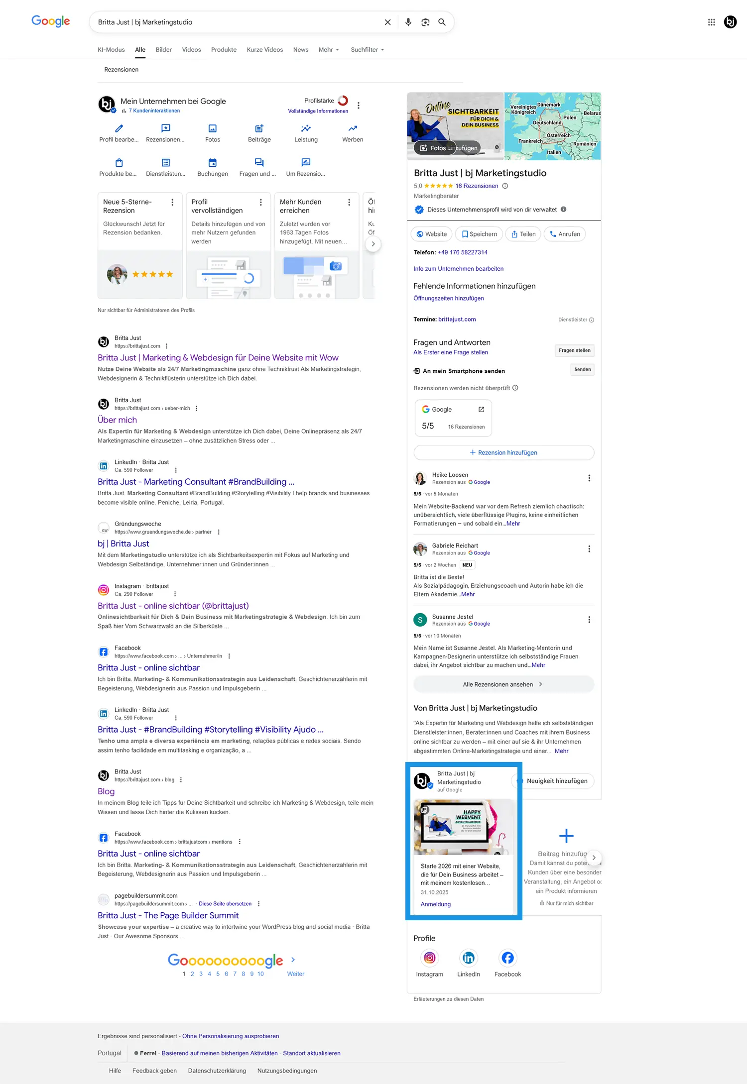 Gerade im lokalen Kontext kann Dein Google Unternehmensprofil Deinen Adventskalender direkt für Suchende sichtbar machen, die nach Geschenken in ihrer Nähe stöbern.