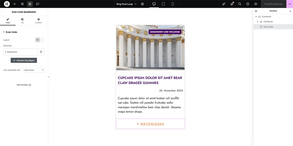 Schritt 1: Widget Icon-List einfügen und optisch anpassen.