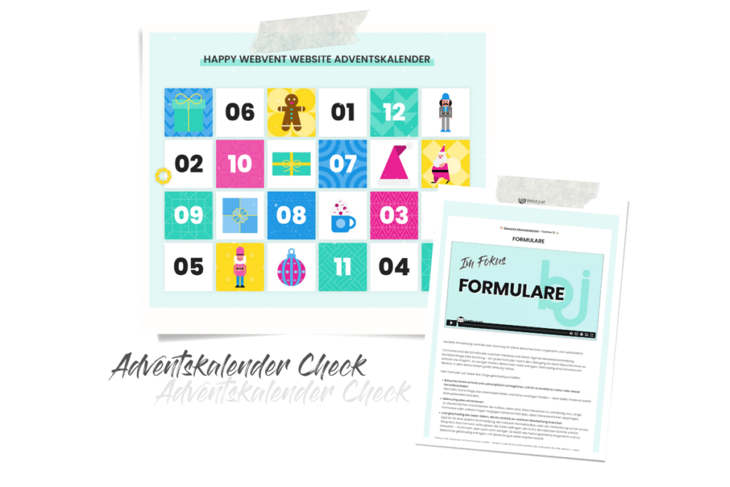 Ich stehe auf und gehe ins Bad, mich fertig machen. Derweil schmeiße ich schon meinen Computer an. Seit Monatsanfang läuft mein Adventskalender HAPPY WEBVENT, in dem ich alle wichtigen Seiten, Unterseiten und Abschnitte einer professionellen Website beleuchte und Tipps zur Optimierung gebe. Heute ist schon Bergfest, whoop whoop 🎉