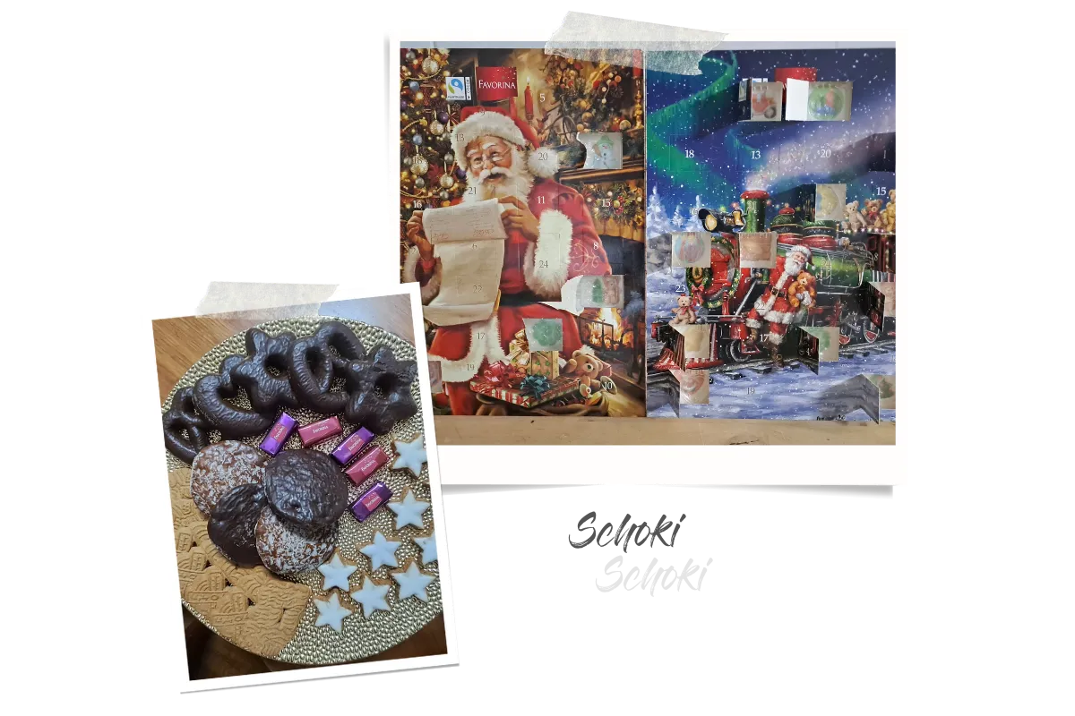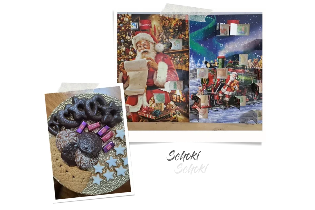 Dann wird es Zeit für das heutige Türchen meines Schokoladenadventskalenders. Kannst Du erraten welcher meiner ist, und welcher dem Männe gehört? Mit einem Schwupps schmilzt mir das Stück Schokolade schon auf der Zunge.
