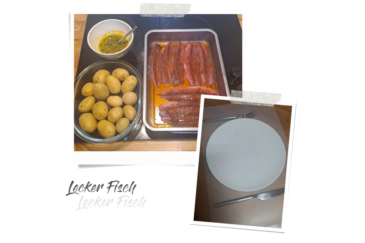 Geschafft! Jetzt wird es Zeit, den Computer runterzufahren und das Abendessen vorzubereiten. Heute bei uns auf dem Tisch: Lecker Fisch. Und Kartoffeln.