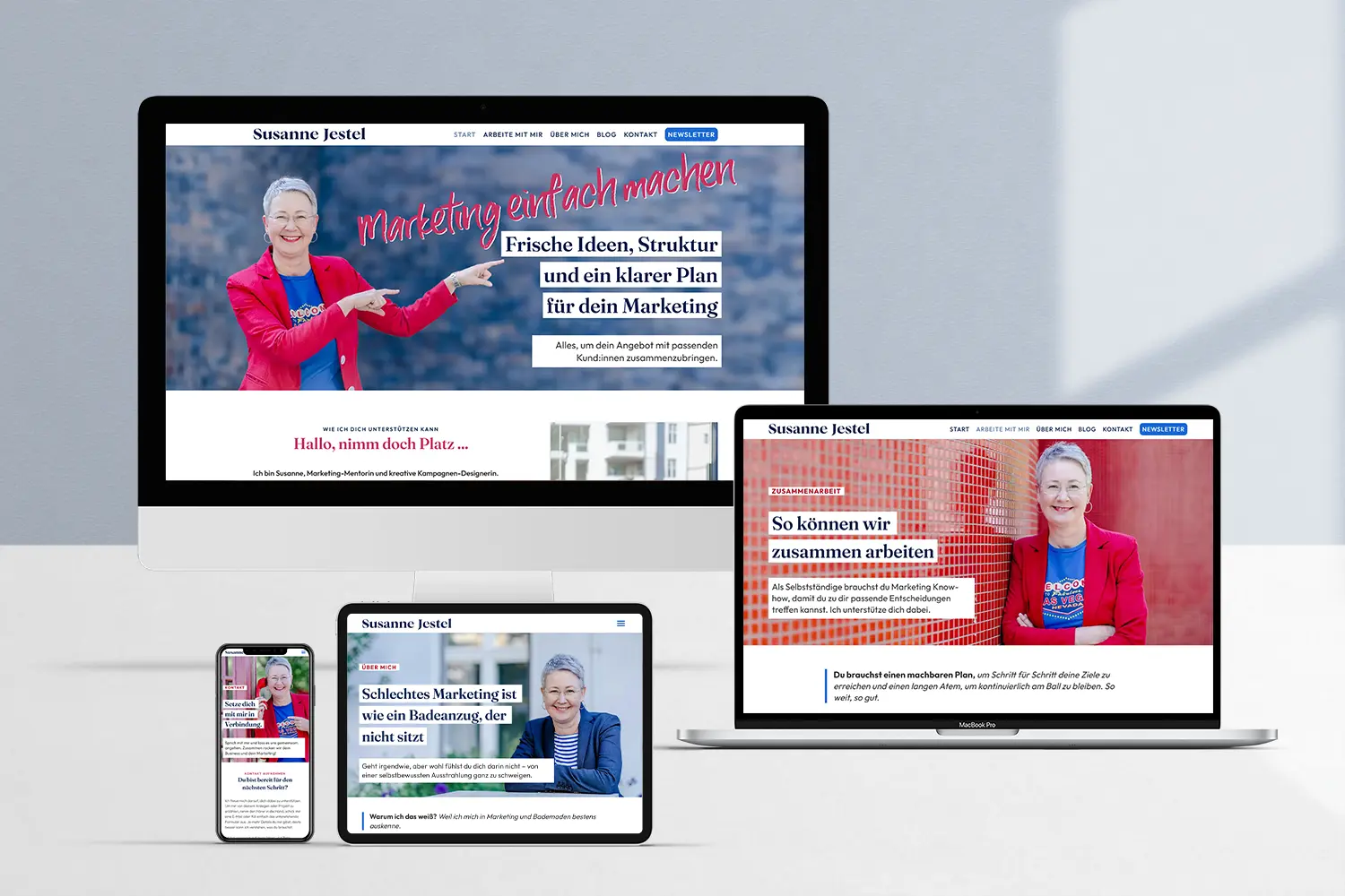 Schlechtes Marketing ist wie ein Badeanzug, der nicht sitzt. Susanne Jestel kennt sich in beidem bestens aus: Zehn Jahre lang führte sie ein Ladenatelier für maßgefertigte Bademoden in Berlin. Heute – mit über 20 Jahren Erfahrung als Marketingmentorin und Kampagnendesignerin – unterstützt sie Selbstständige dabei, sichtbar zu werden, Interessierte Schritt für Schritt zu begleiten und ihnen eine informierte Kaufentscheidung zu ermöglichen.